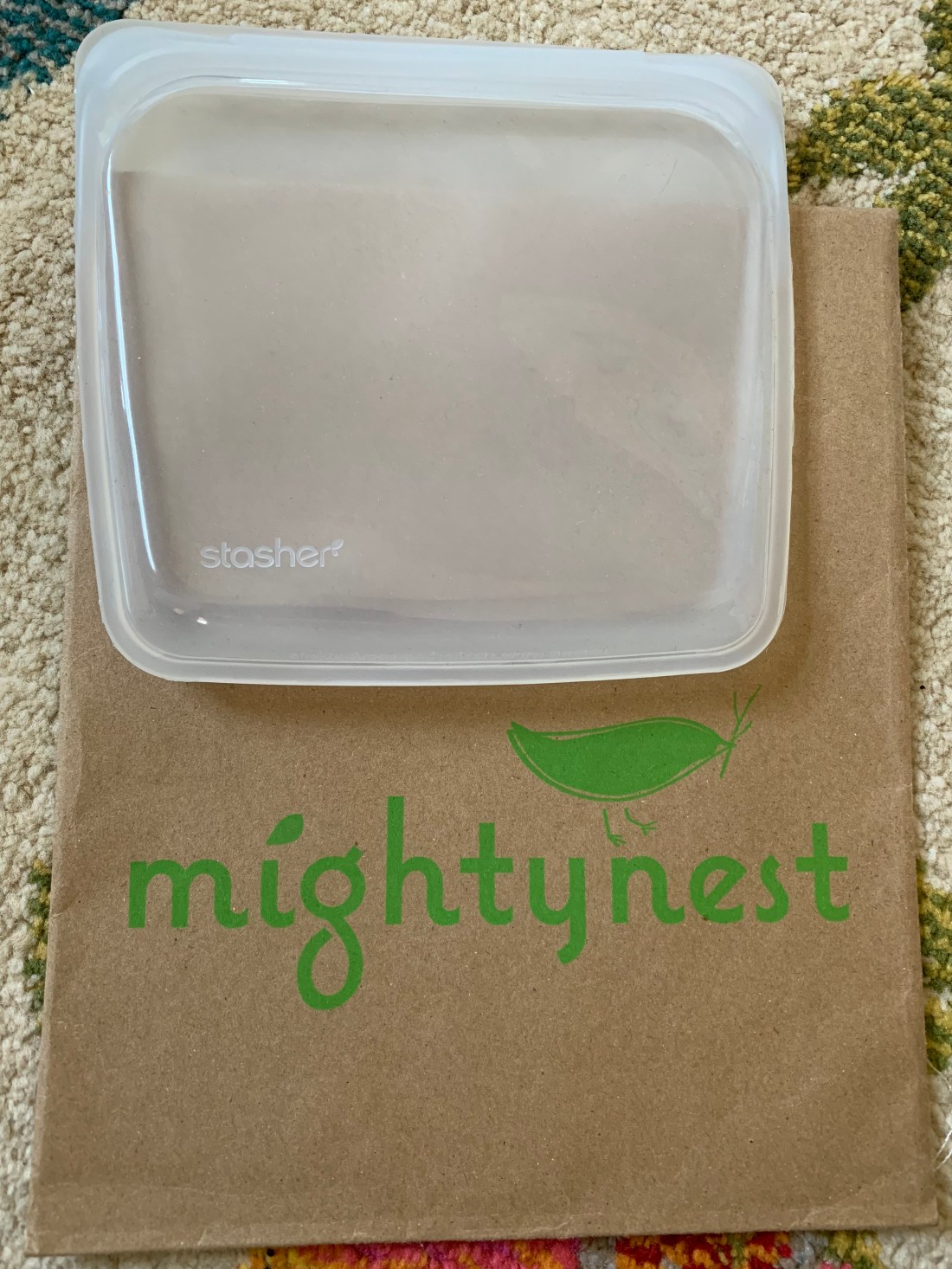 March’s item was a Stasher brand reusable ziplock bag! I’ve been wanting to try one of these for several years but it’s the type of purchase I didn’t really make for myself based on cost. 50 ziplock bags for $5 at Target or 1 Stasher bag for $15? Hmmmm…. that said, I do feel guilty every time I use disposable bags and this is one of the final frontiers of my eco friendly journey.